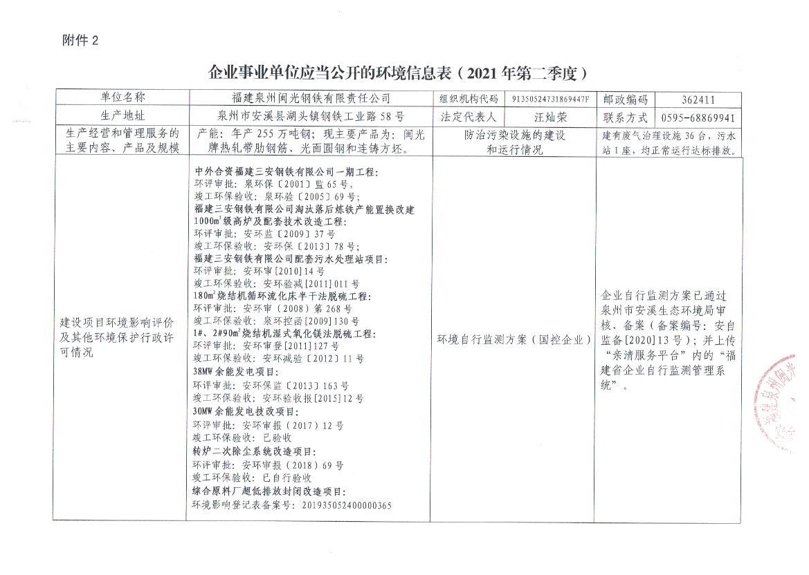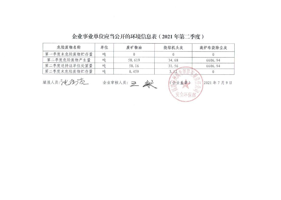 企業(yè)事業(yè)單位應(yīng)當(dāng)公開(kāi)的環(huán)境信息表(2021年度第二季度)