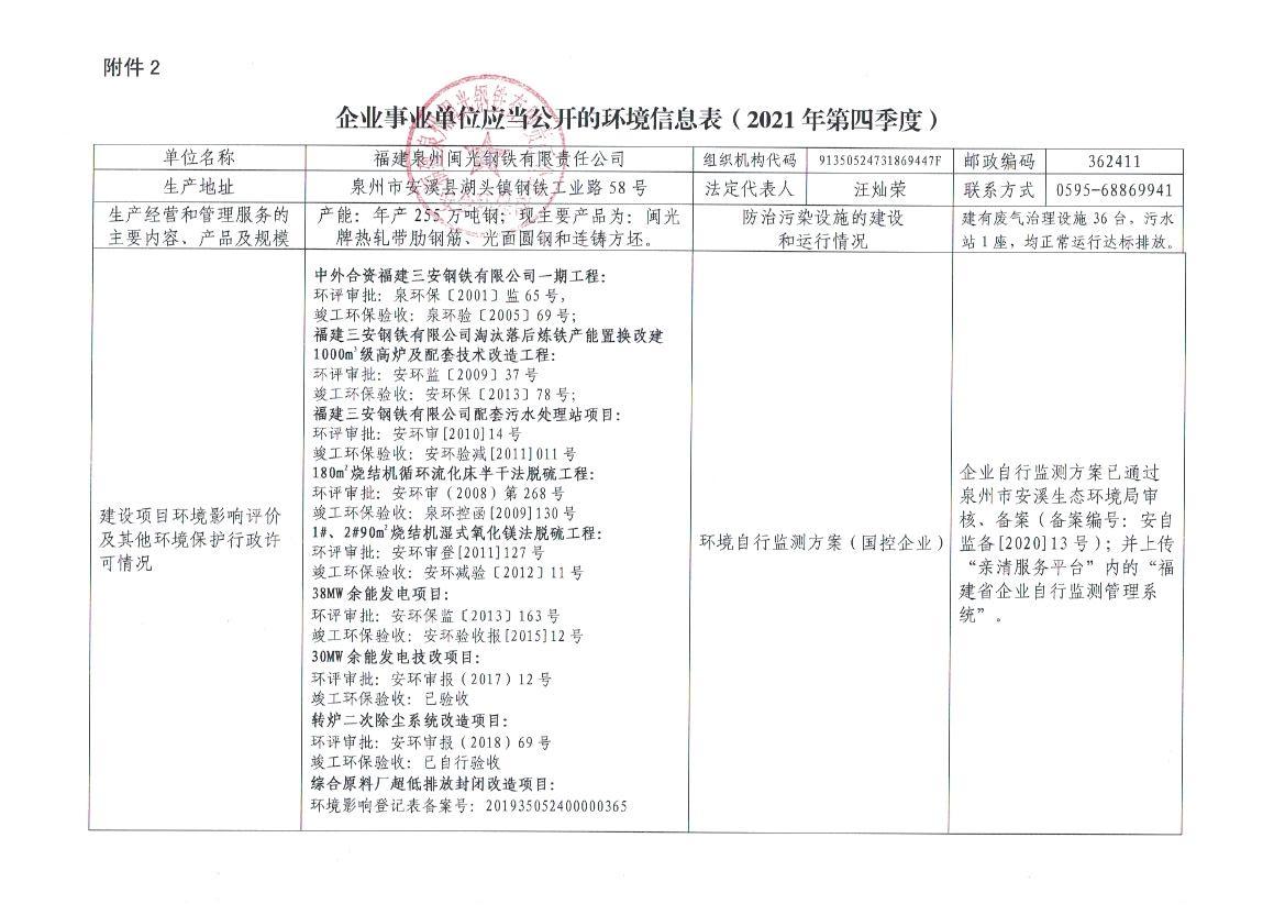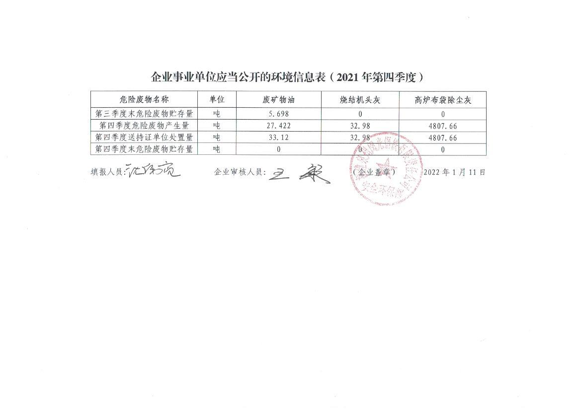 企業(yè)事業(yè)單位應(yīng)當公開的環(huán)境信息表(2021年度第四季度)