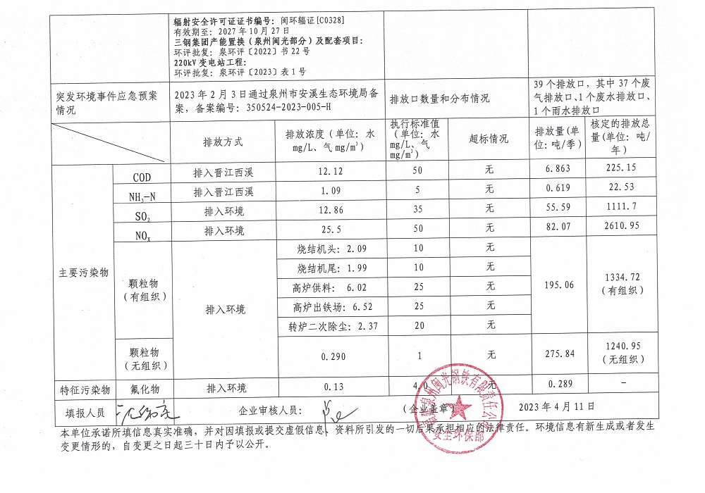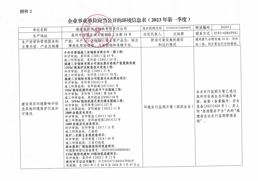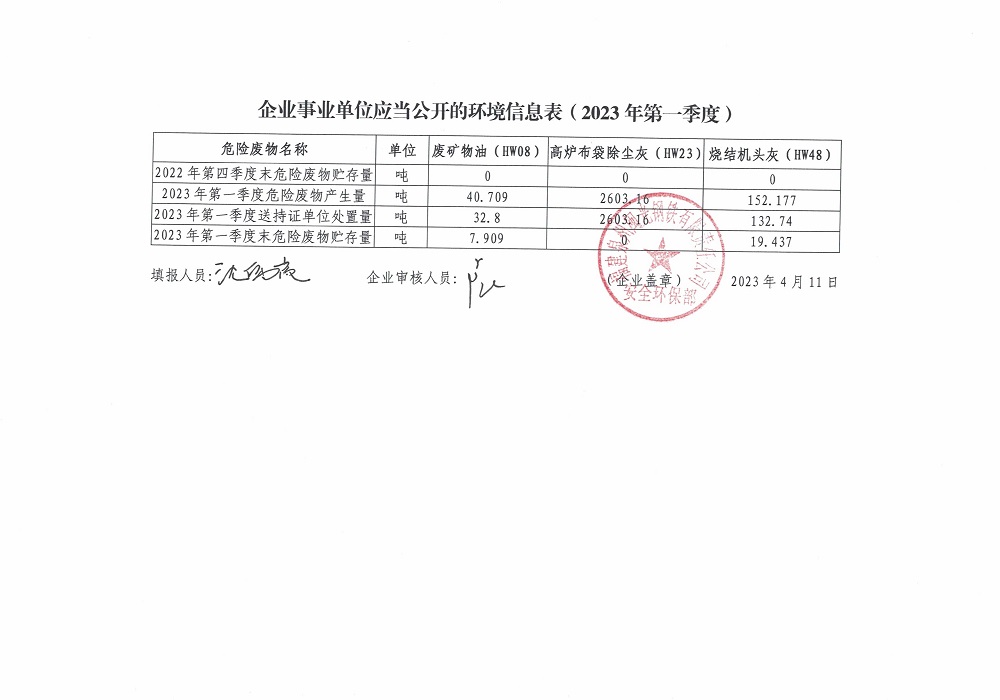 企業(yè)事業(yè)單位應當公開的環(huán)境信息表(2023年度第一季度)