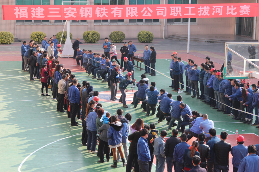 12月30——31日,三安鋼鐵“迎新年、慶元旦”拔河比賽在公司籃球場舉行,經過激烈角逐,最終,煉鐵廠代表隊、煉鋼廠代表隊、軋鋼廠代表隊、質計部代表隊、物保代表隊、綜合廠代表隊分獲前6名。
