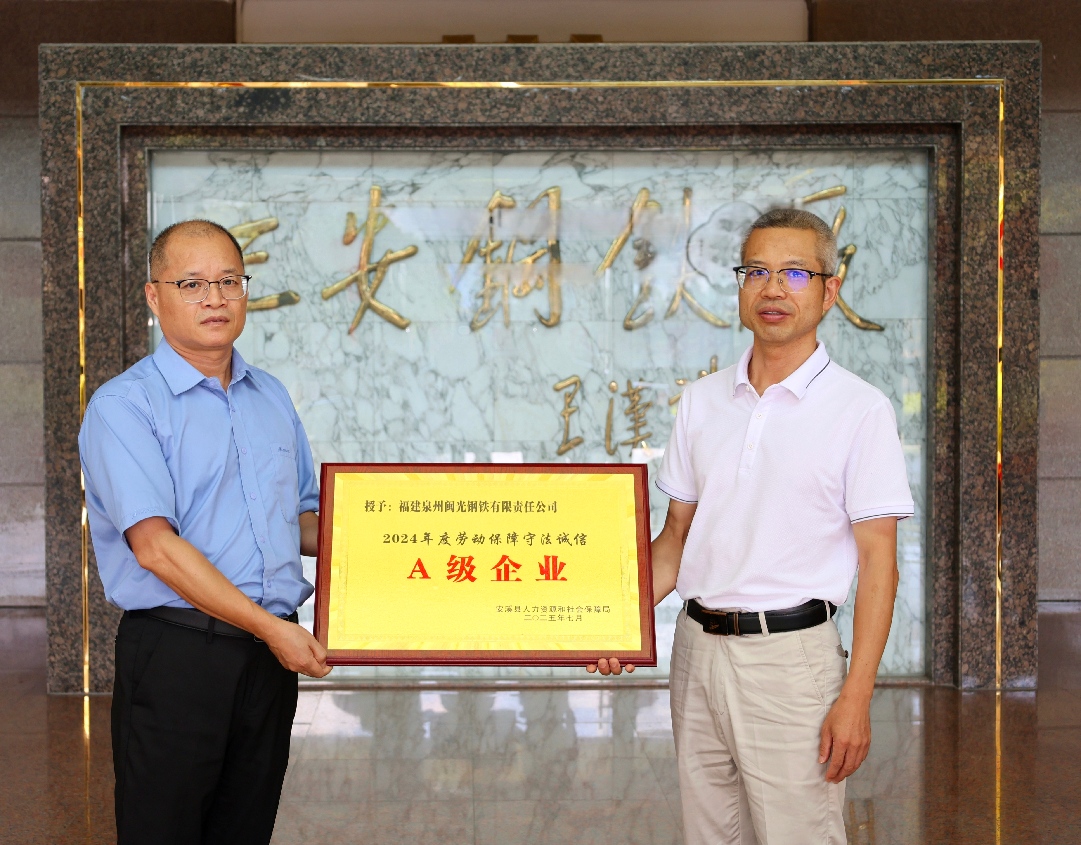 近日,安溪縣人力資源和社會(huì)保障局公布了2024年度企業(yè)勞動(dòng)保障守法誠信等級(jí)評(píng)價(jià)結(jié)果,泉州閩光榮獲最高等級(jí)“A級(jí)企業(yè)”認(rèn)證。9月11日,安溪縣人社局勞動(dòng)監(jiān)察大隊(duì)大隊(duì)長(zhǎng)鐘金州到公司授牌,公司總經(jīng)理吳秀仁出席授牌儀式。